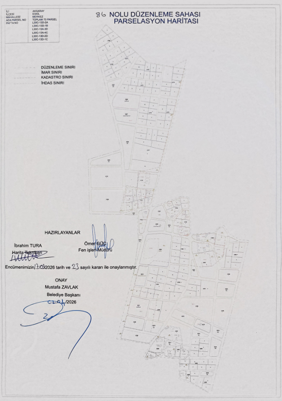 parselleri kapsayan 86 nolu düzenleme sahası