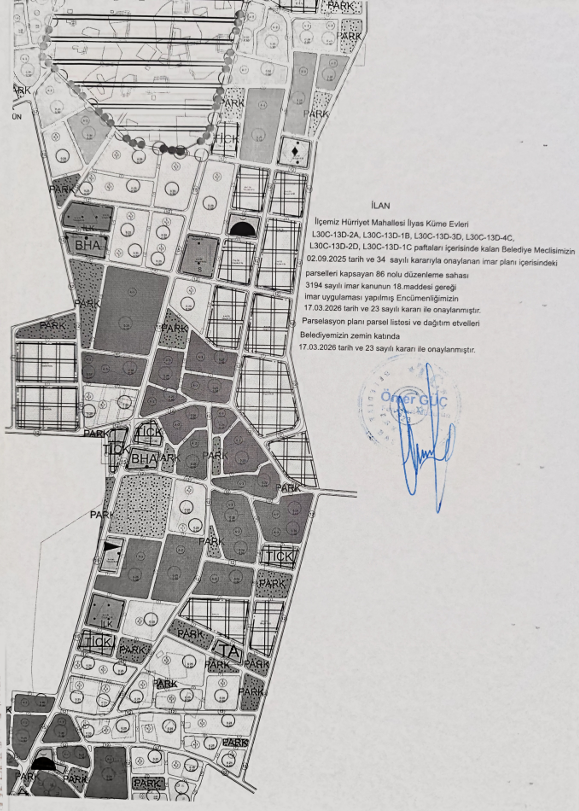 L30C-13D-2D, L30C-13D-1C paftaları içerisinde kalan Belediye Meclisimizin
