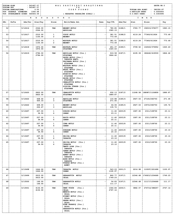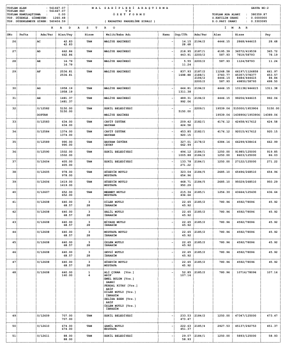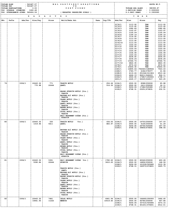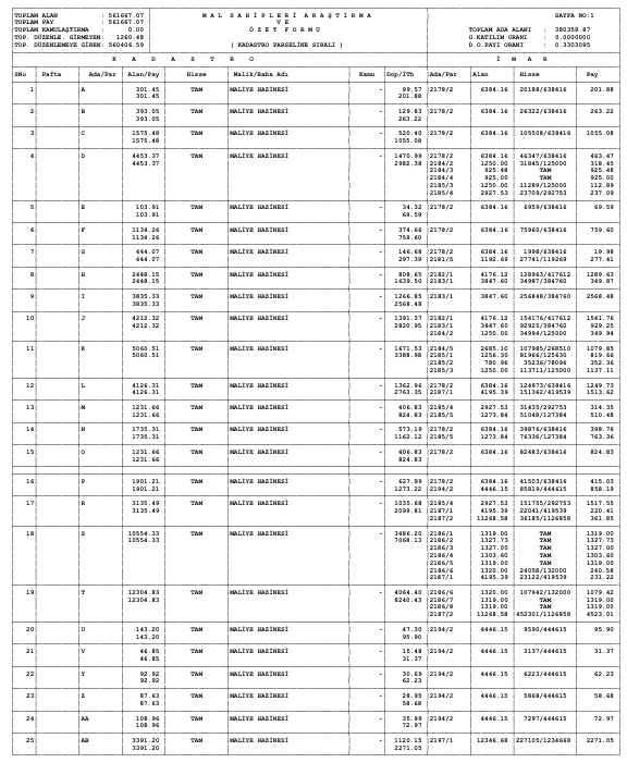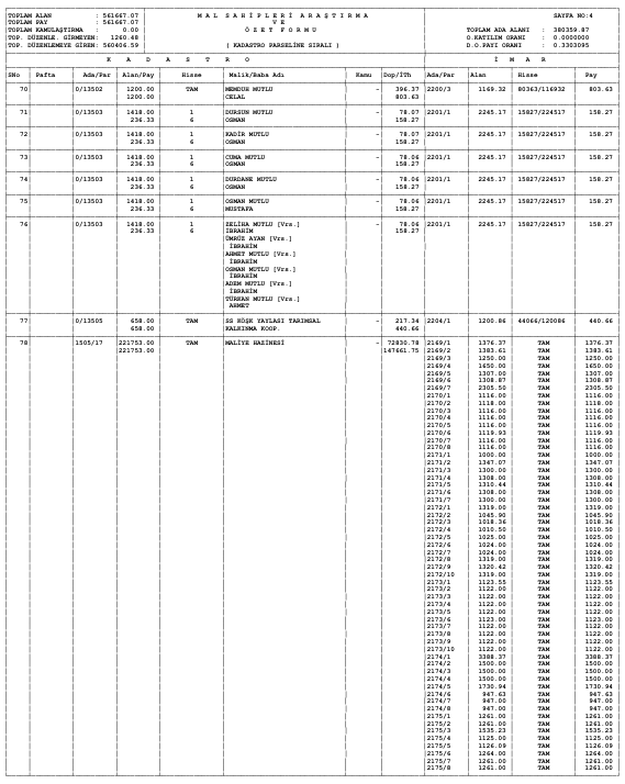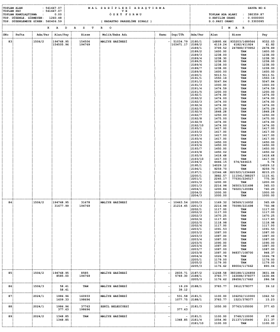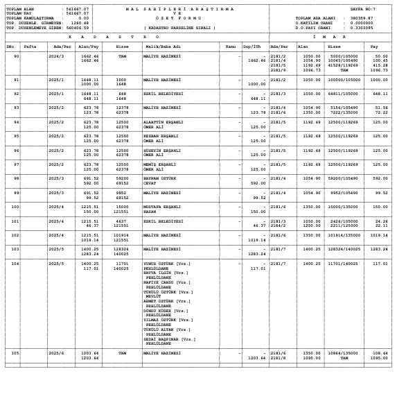 Parselasyon planı parsel listesi ve dağıtım cetvelleri